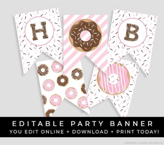Pink Donut Birthday Banner Party Decorations For Girl Donuts Etsy